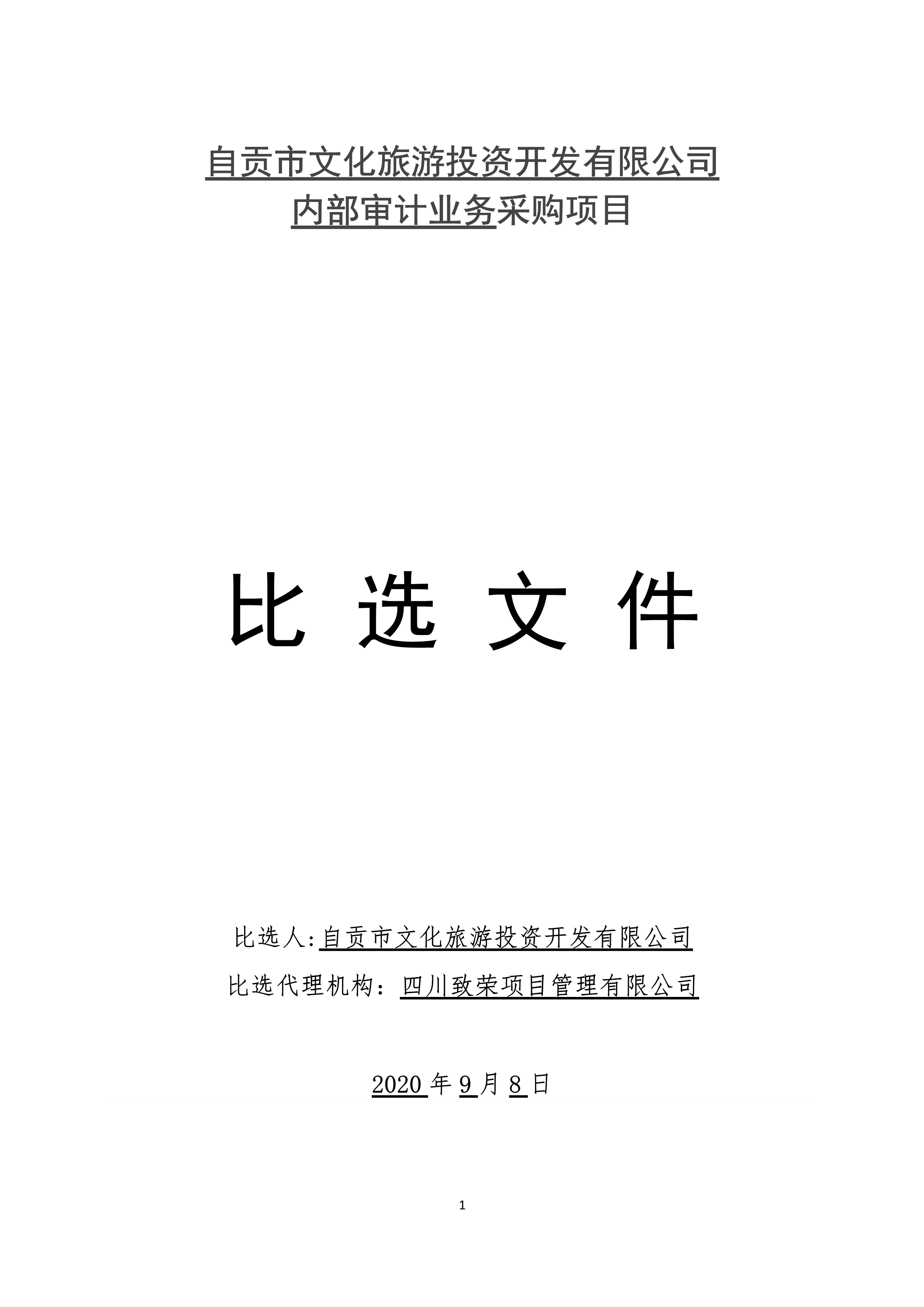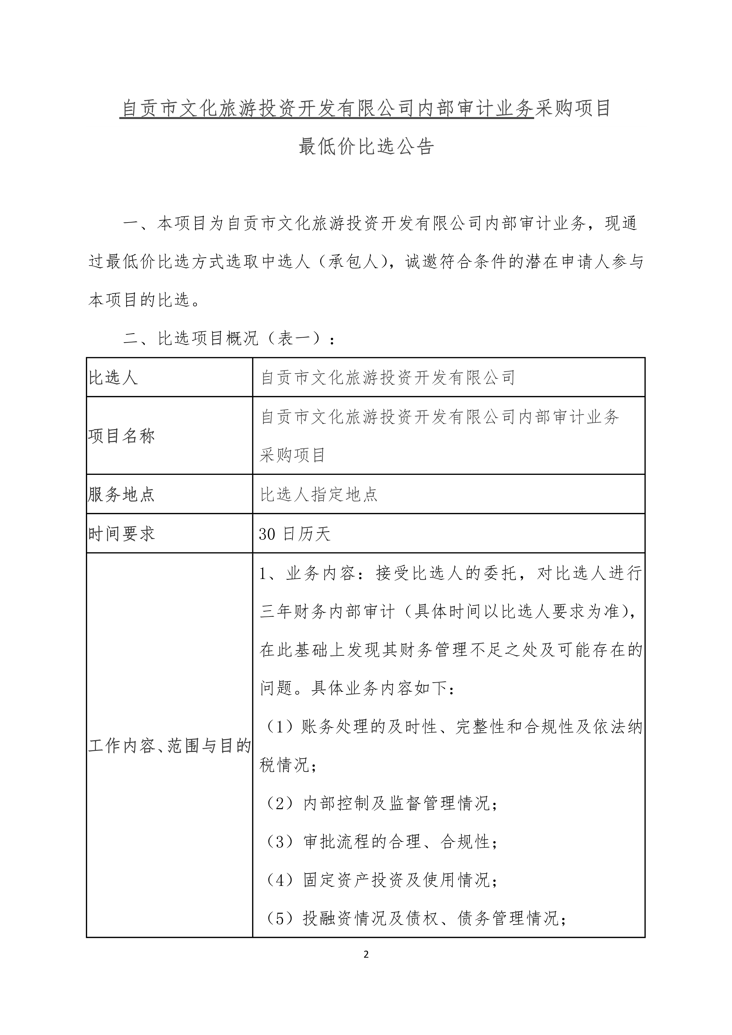 自貢市文化旅游投資開發(fā)有限公司內部審計業(yè)務采購項目比選文件