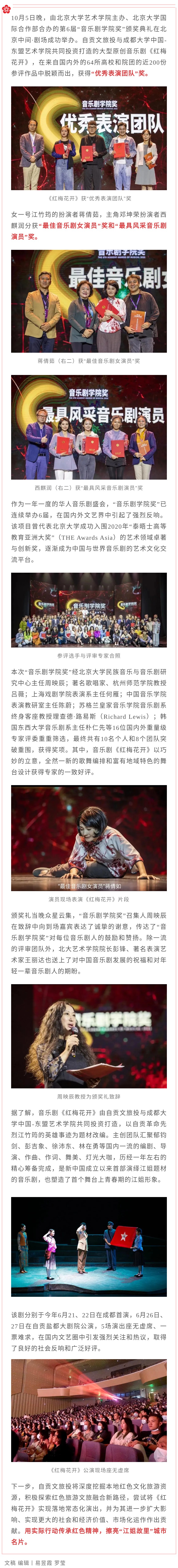 《紅梅花開》傳捷報(bào),斬獲第6屆“音樂劇學(xué)院獎”多項(xiàng)大獎