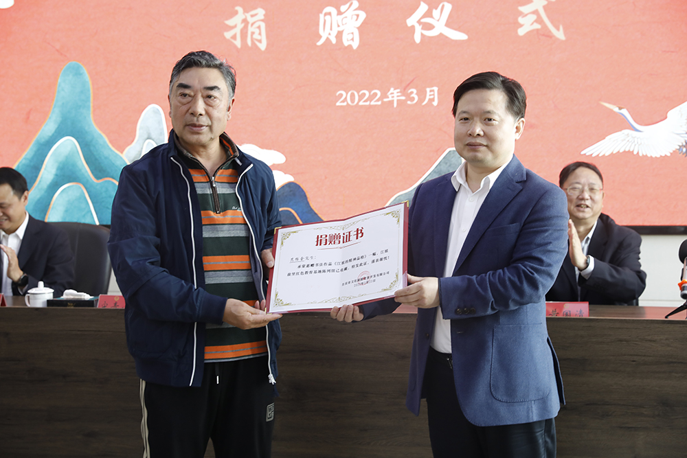 儀式上,范紹全將書法作品《江姐的精神品格》交到了自貢文旅投董事長宋青山的手中 。他表示,自貢歷史悠久、人才輩出,涌現(xiàn)出了一大批以江竹筠、吳玉章為代表的革命志士,為新中國成立作出了杰出貢獻(xiàn),我們要永遠(yuǎn)銘記革命先輩精神,讓紅色基因代代相傳。