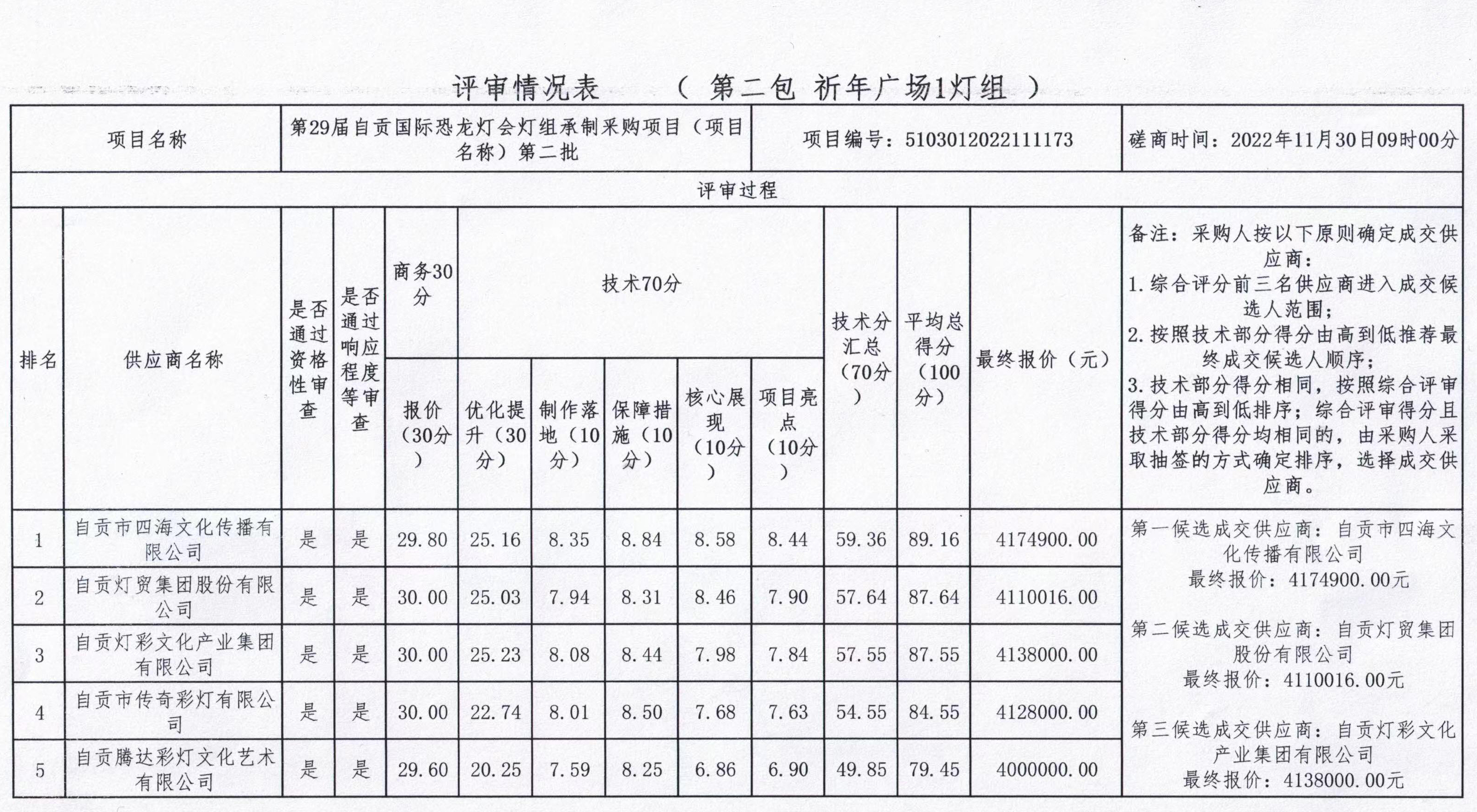 第29屆自貢國際恐龍燈會燈組承制釆購項目(項目名稱)第二批競爭性磋商結(jié)果公告