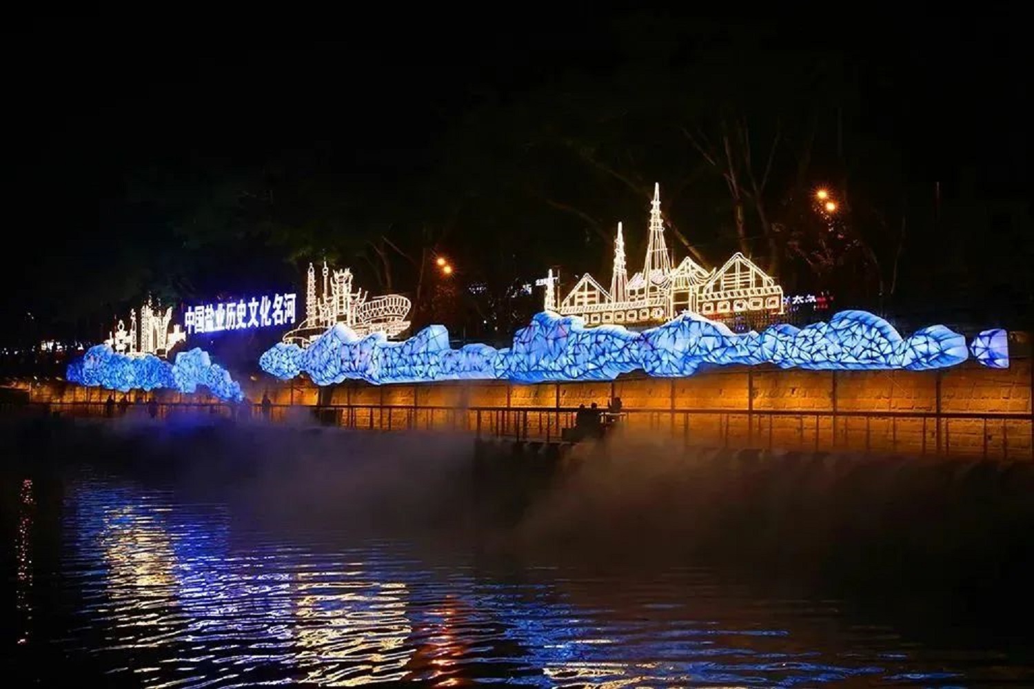 2019年建成投用的“夜游釜溪”是四川省三大“夜游項(xiàng)目”之一,全程約6.2公里,根據(jù)我市“青山兩面合,碧水中間流,花環(huán)綠樹繞,鱗次見重樓”的城區(qū)特點(diǎn),通過傳統(tǒng)彩燈加現(xiàn)代“聲、影、光、電”等新工藝,呈現(xiàn)釜溪河“半城青山半城樓、彩燈輝映碧水流”盛景。讓游客沿河感受自貢鹽業(yè)文化記憶,體驗(yàn)“夜游釜溪”的獨(dú)特魅力和夜色燈火的景象趣味。
