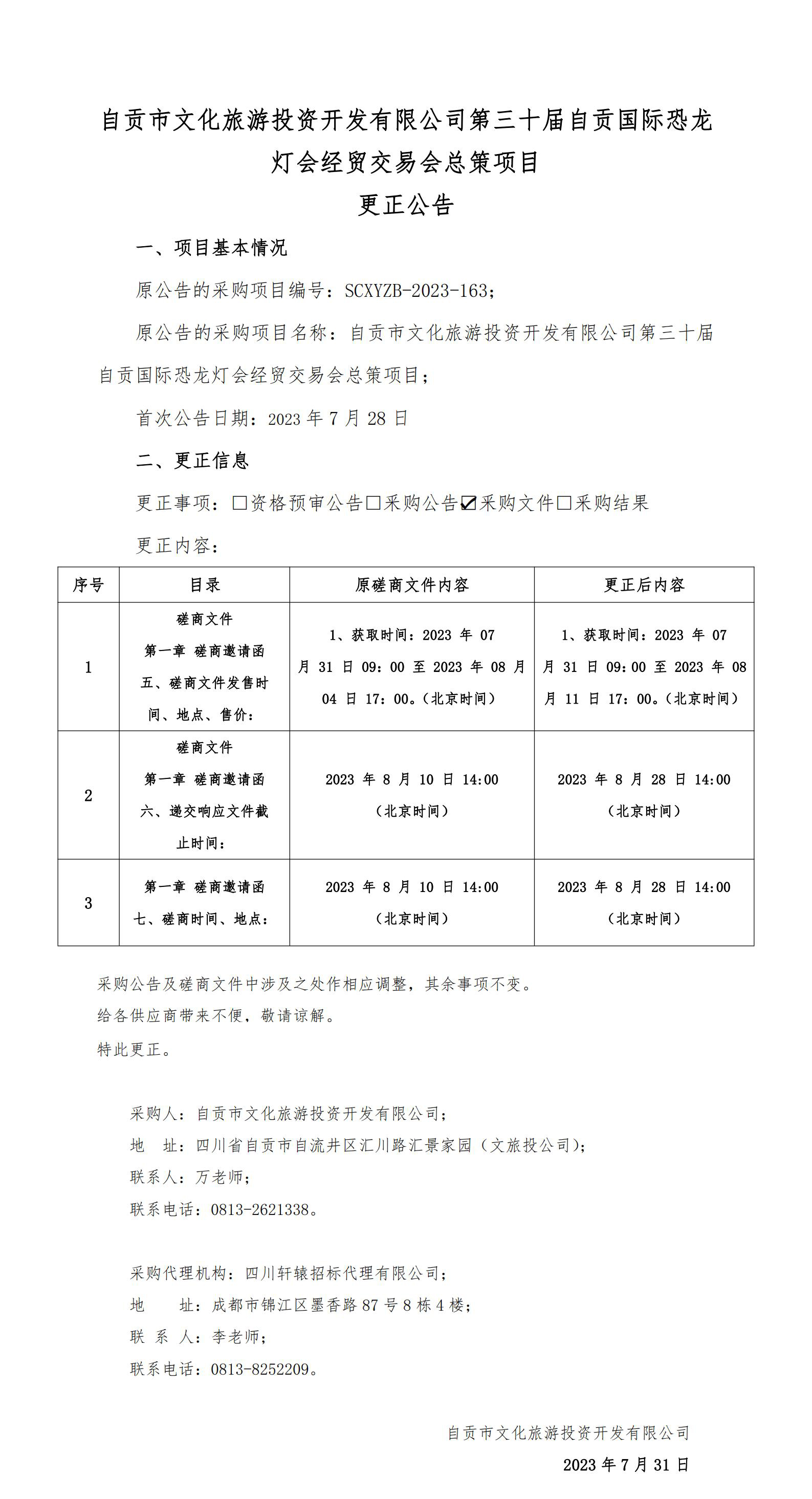 第三十屆自貢國際恐龍燈會經(jīng)貿(mào)交易會總策項目更正公告