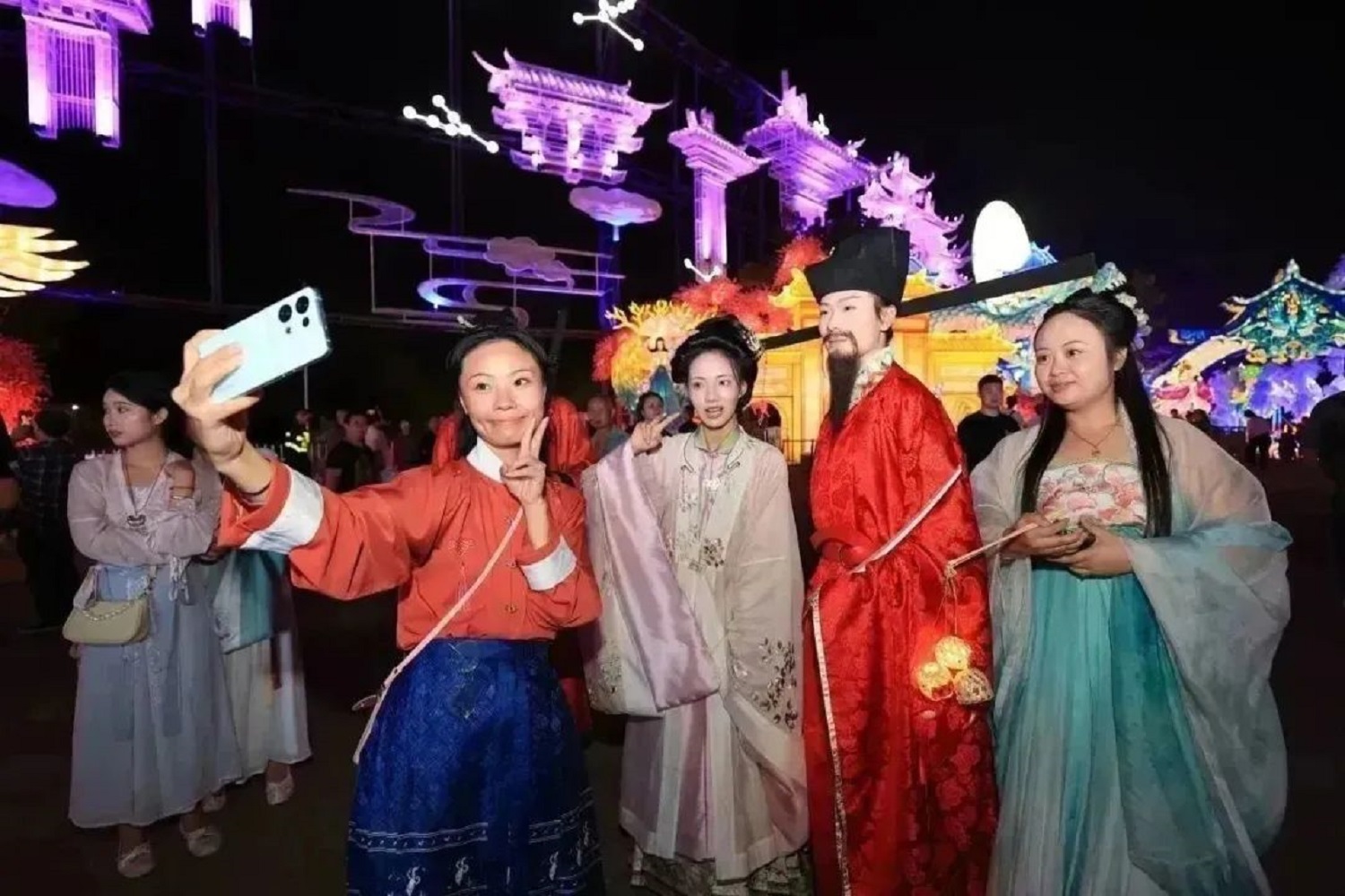 “我們看了無(wú)人機(jī)表演,還遇到很多神話人物,跟何仙姑、鐵拐李合了影……”回憶起這次中秋國(guó)慶主題燈會(huì)的觀燈感受,四川游客劉女士至今記憶猶新,比起之前曾看過(guò)的春節(jié)燈會(huì),別有一番新奇和收獲。
