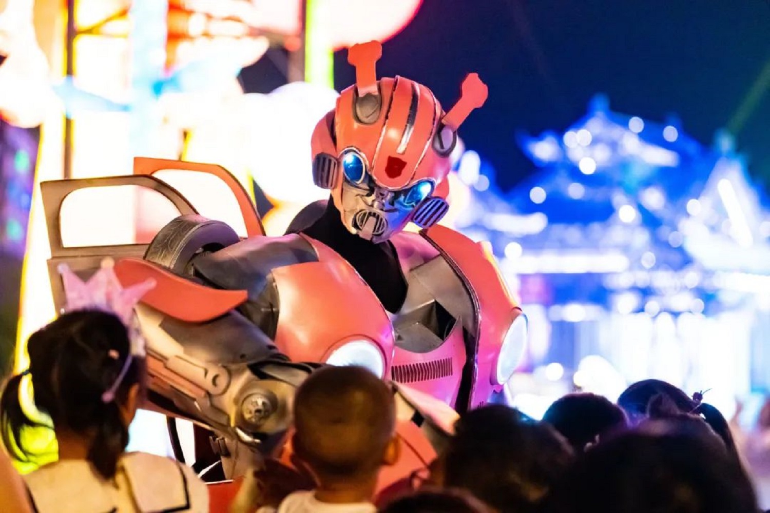 孫剛介紹,本次主題燈會(huì)除了欣賞燈組,各種互動(dòng)體驗(yàn)活動(dòng)和演藝活動(dòng)成了吸引游客的一大亮點(diǎn),增加了參與性和互動(dòng)性,使游客能夠更身臨其境地感受節(jié)日氛圍。大假期間,園內(nèi)12處演藝區(qū)域總共表演340場(chǎng),游客從入園就能欣賞到嫦娥飛天、貂蟬拜月等場(chǎng)景,各路“神仙”還可與游客進(jìn)行趣味互動(dòng)。600架無(wú)人機(jī)表演,呈現(xiàn)17種3D視覺(jué)效果畫(huà)面,從浩瀚的宇宙到四川元素及自貢鹽龍燈文化特色,吸引游客駐足觀賞。這些都為主題燈會(huì)增色不少。