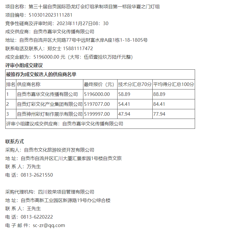 第三十屆自貢國際恐龍燈會(huì)燈組承制項(xiàng)目第一標(biāo)段華夏之門燈組競(jìng)爭(zhēng)性磋商成交公告