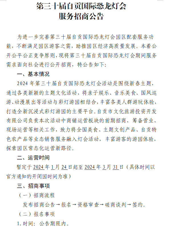 第三十屆自貢國際恐龍燈會(huì)服務(wù)招商公告