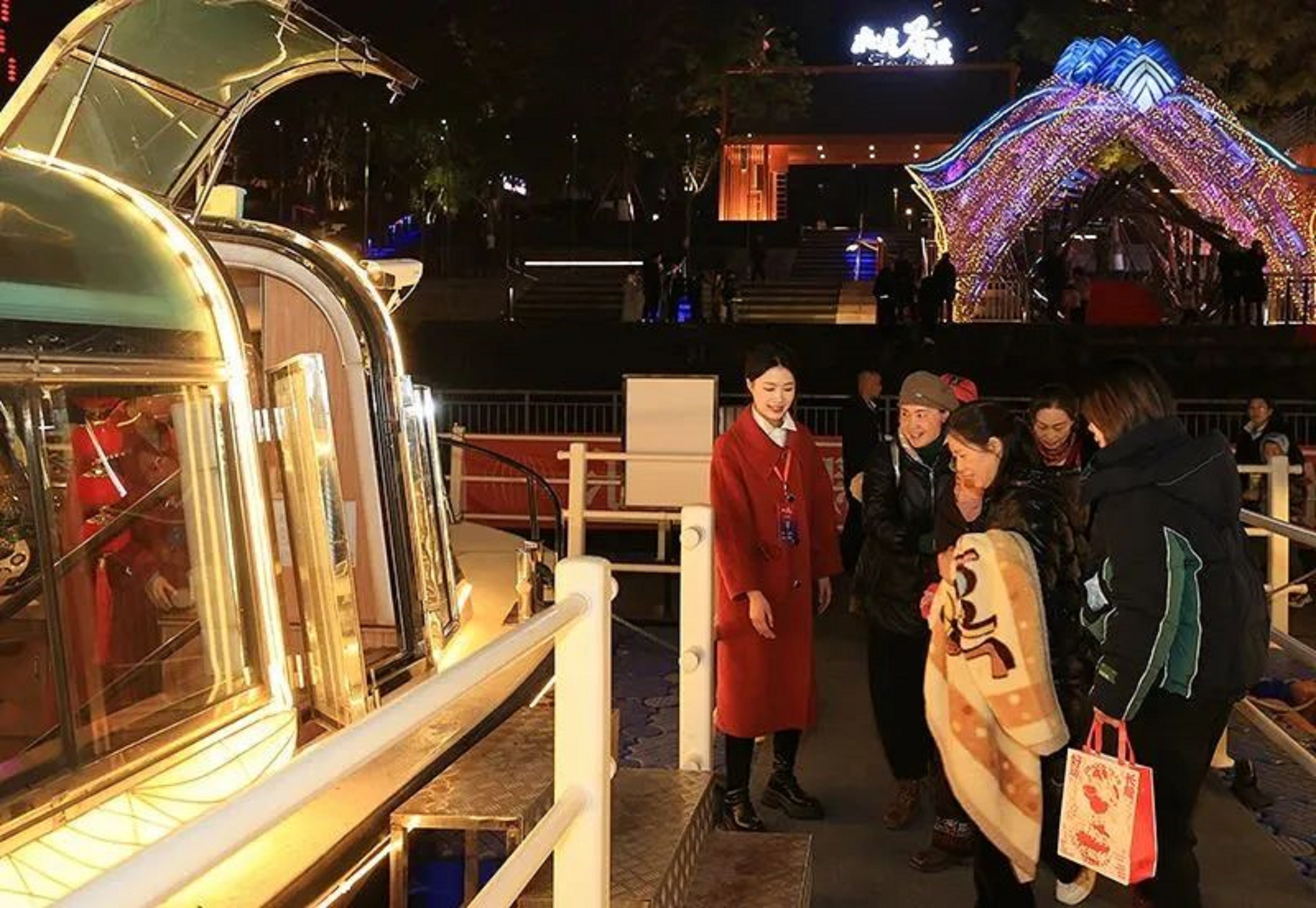 一條蜿蜒的釜溪河,串聯(lián)起“煙火味”的毛家壩碼頭、“文化韻”的王爺廟、“國(guó)潮風(fēng)”的自流井老街。2月17日晚,隨著船夫的吆喝聲,當(dāng)晚最后一艘滿載游客的游船緩緩駛離碼頭,在光影交錯(cuò)間,體驗(yàn)一場(chǎng)“夢(mèng)回古鹽都、穿越兩千年”的穿越之旅。