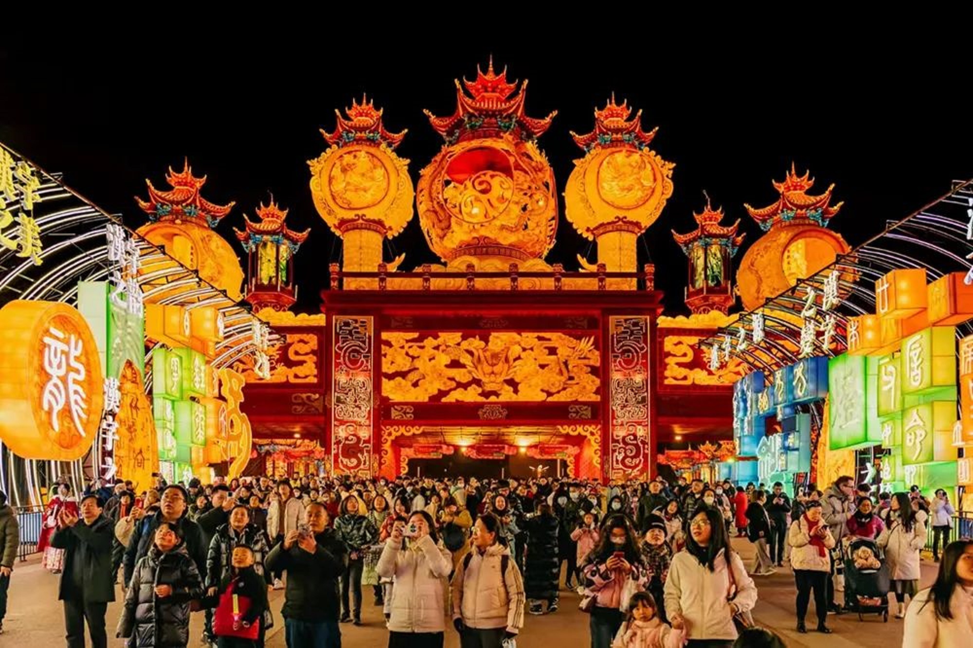 第30屆自貢國際恐龍燈會(huì)以燈為載體,以中國傳統(tǒng)文化為牽引,以傳統(tǒng)技藝和前沿科技為手段,打造“華夏樂章”“盛世歡歌”“年味中國”“浪漫中國”四大板塊,用一條時(shí)間線串聯(lián)起五千年華夏文明精髓。同時(shí),打造全園區(qū)360度行進(jìn)式演藝新場景,引入“王者榮耀”“泡泡瑪特”等國內(nèi)頂流IP,推出開發(fā)“十三太?!薄艋鹆髂甑任膭?chuàng)產(chǎn)品,為游客打造了一場沉浸式的非遺文化時(shí)空穿越之旅。