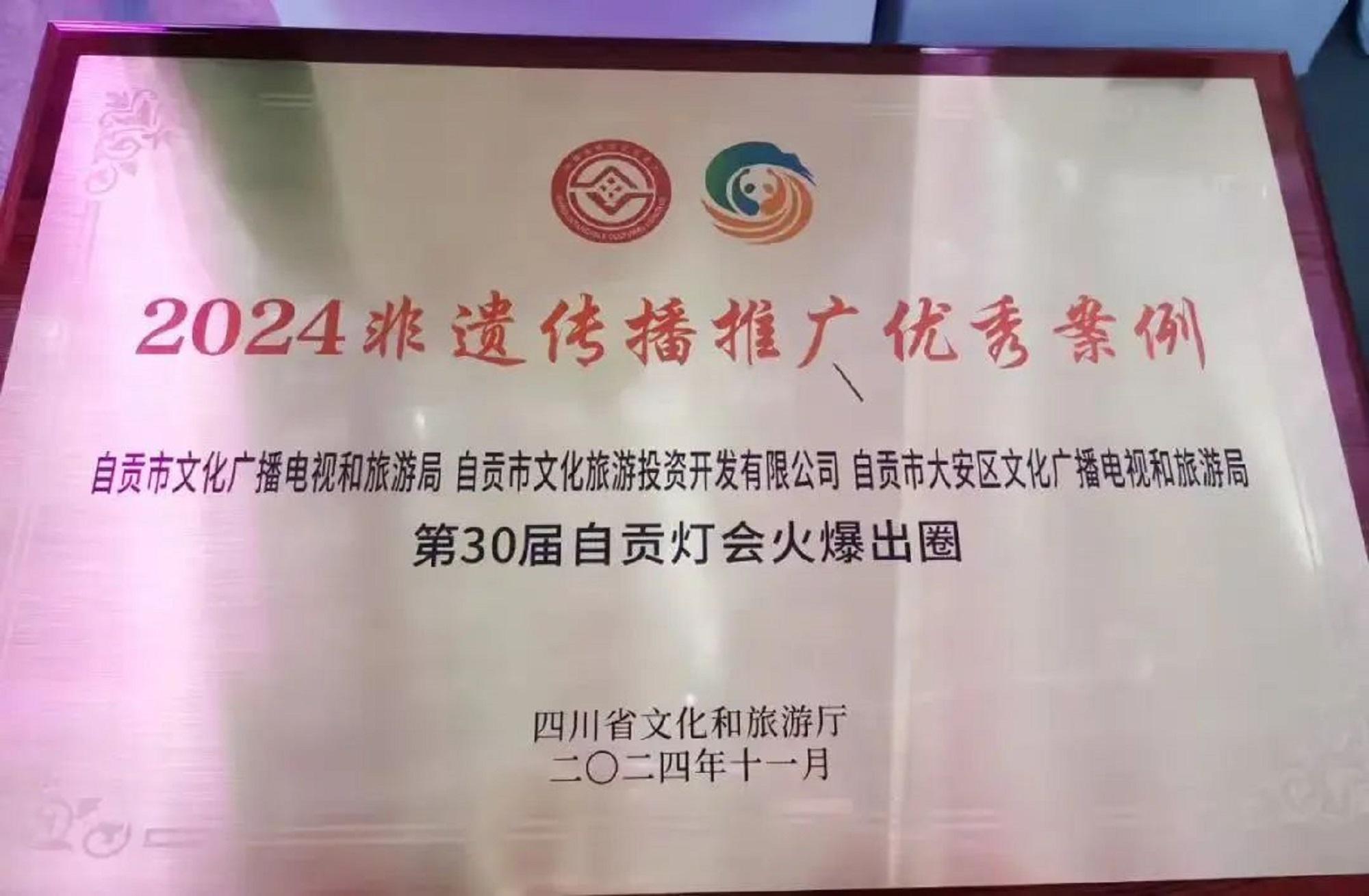 活動(dòng)發(fā)布了2024年度四川非遺保護(hù)傳承優(yōu)秀案例,由自貢市文化廣播電視和旅游局、自貢文旅發(fā)展集團(tuán)旗下自貢市文化旅游投資開發(fā)有限公司、自貢市大安區(qū)文化廣播電視和旅游局選送的“第30屆自貢燈會(huì)火爆出圈”宣傳推廣案例,經(jīng)專家評審、網(wǎng)絡(luò)投票,在上千個(gè)案例中脫穎而出,成功入選2024非遺傳播推廣優(yōu)秀案例。