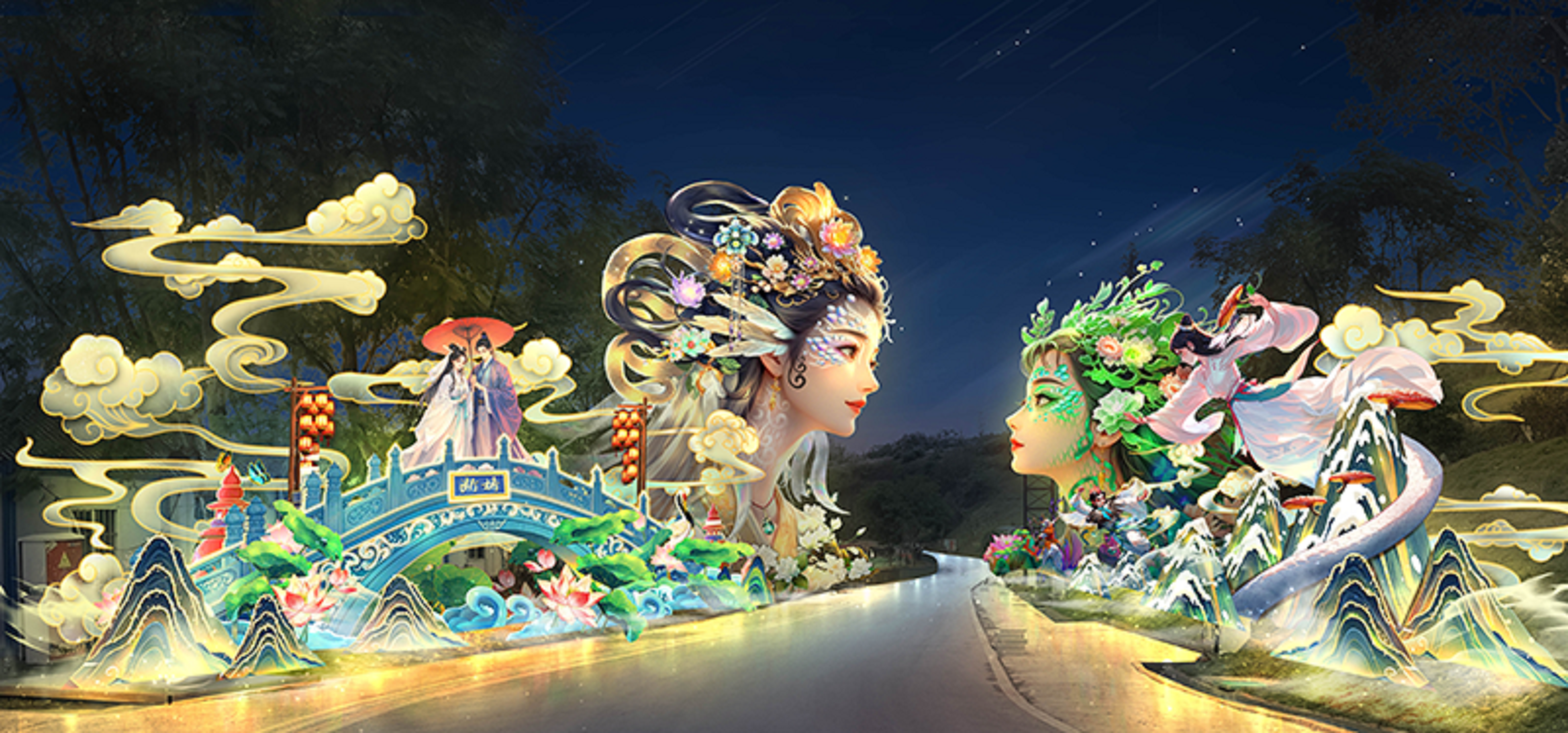其中,作為蛇年自貢燈會的代表燈組——“白蛇回春”備受期待。該燈組以中國民間四大愛情傳說故事《白蛇傳》為藍本,打造白蛇青蛇巨型“網(wǎng)紅”燈。兩姐妹一左一右,白素貞仙氣飄飄、俠骨柔情,小青生機勃勃、神秘莫測,仿佛將觀眾帶入那個充滿奇幻與浪漫的傳說世界。