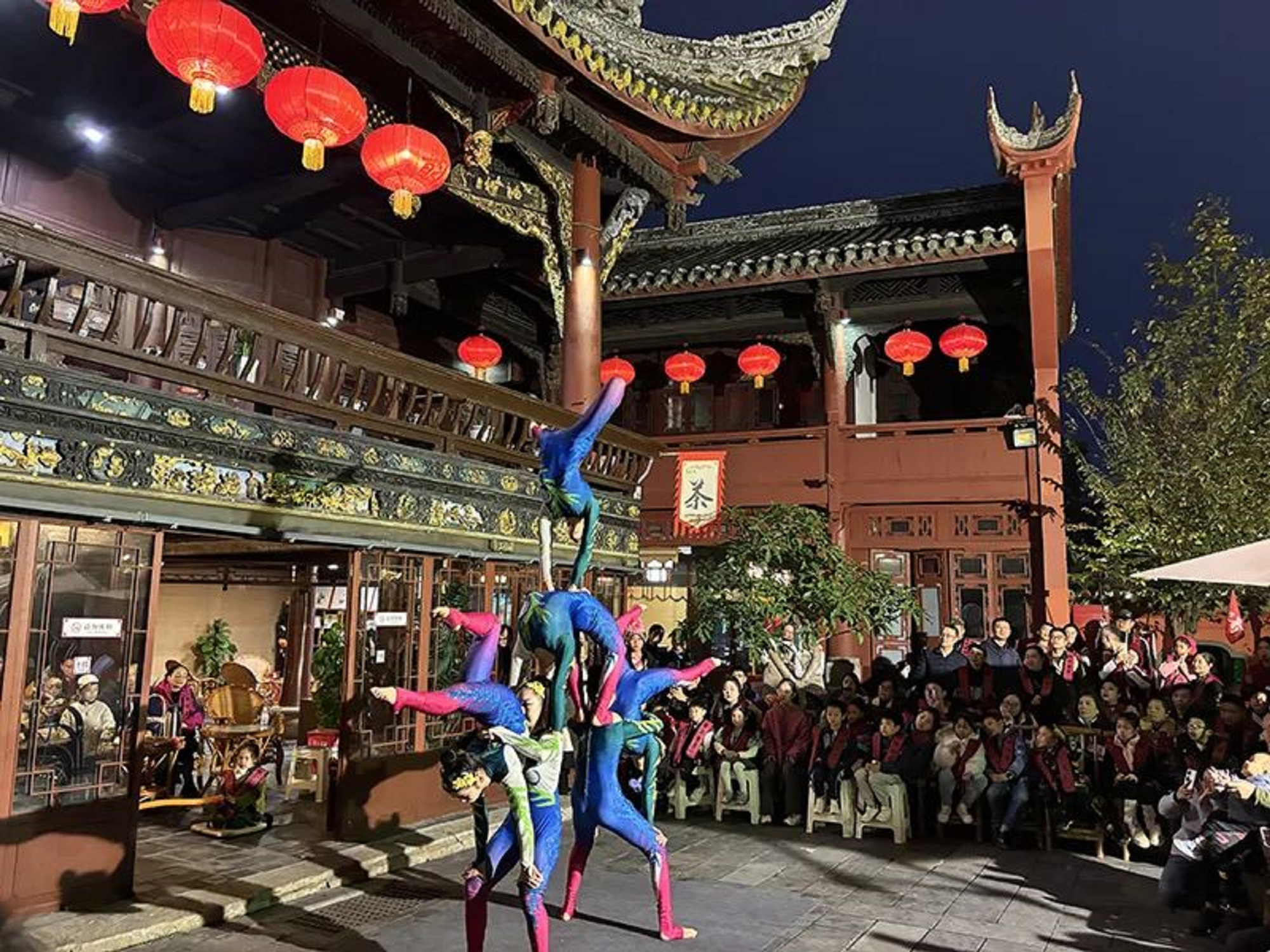 作為沿河重點景觀之一的王爺廟也在春節(jié)期間推出了特色文藝表演,為游客帶來曲藝、川劇、雜技等專場演出,共4100余名游客到王爺廟品茗觀景,感受傳統(tǒng)文化的獨特魅力。
