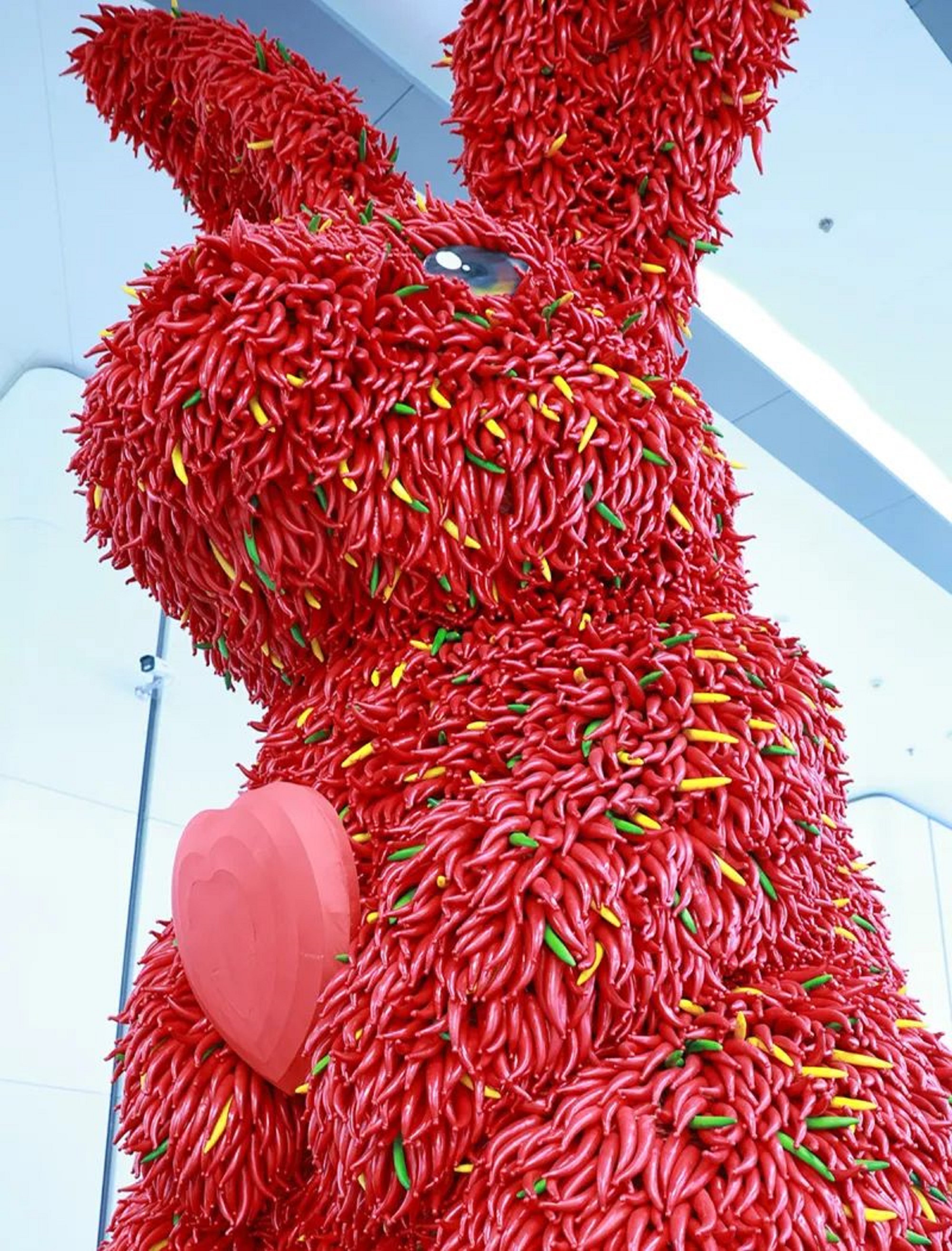 “之所以選用兔子造型,是因為自貢以兔子為原材料制作的美食享譽全國,像鮮鍋兔、冷吃兔等,早已成為自貢美食的招牌?!毕嚓P(guān)負責人朱翔介紹,辣椒與兔子的組合,不僅是視覺上的大膽創(chuàng)新,更在味覺聯(lián)想上實現(xiàn)了巧妙融合,生動展現(xiàn)了自貢作為“美食之府”的獨特風采,色彩鮮明的辣椒裝飾更能引發(fā)人們對味蕾的想象,深刻體現(xiàn)出自貢豐富多樣的飲食文化與城市魅力。