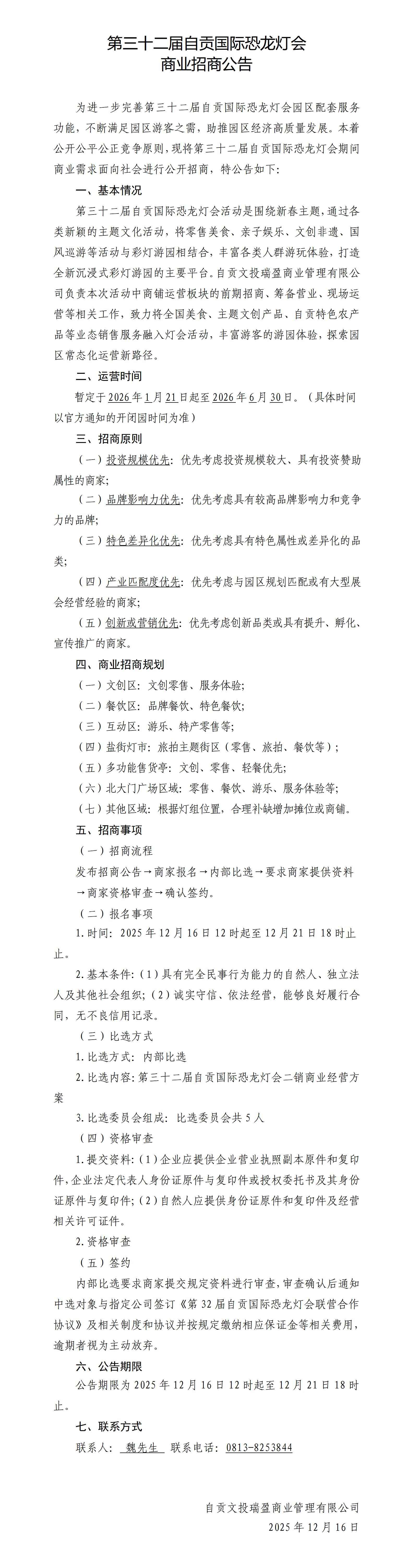 第三十二屆自貢國(guó)際恐龍燈會(huì) 商業(yè)招商公告