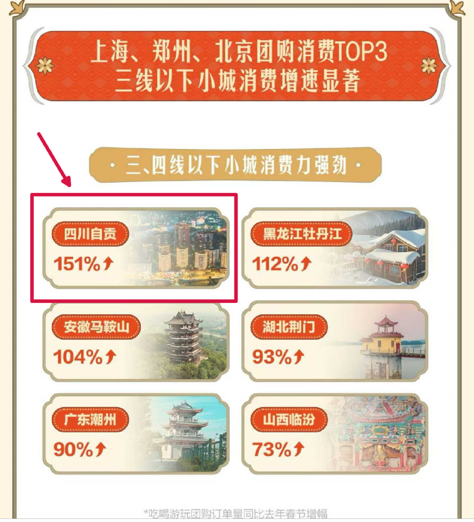 在長(zhǎng)達(dá)112天的光影盛宴中,中華彩燈大世界累計(jì)接待游客208.73萬(wàn)人,同比增長(zhǎng)61.43%,實(shí)現(xiàn)綜合收入2.36億元,同比增長(zhǎng)43.9%。其中,門票收入2.12億元,同比增長(zhǎng)55.88%。春節(jié)假期期間,燈會(huì)門票收入位列全省景區(qū)首位,榮登抖音平臺(tái)中小城市消費(fèi)力TOP1、全國(guó)“種草榜”TOP6,入選抖音“春節(jié)十大受歡迎特色景區(qū)”榜單,登上美團(tuán)“燈會(huì)”搜索城市榜首。
