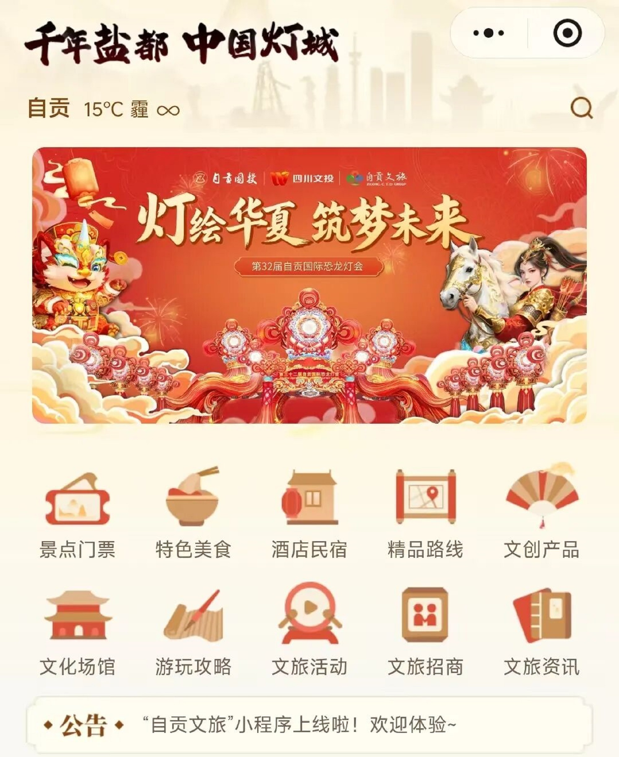 “自貢文旅”小程序界面