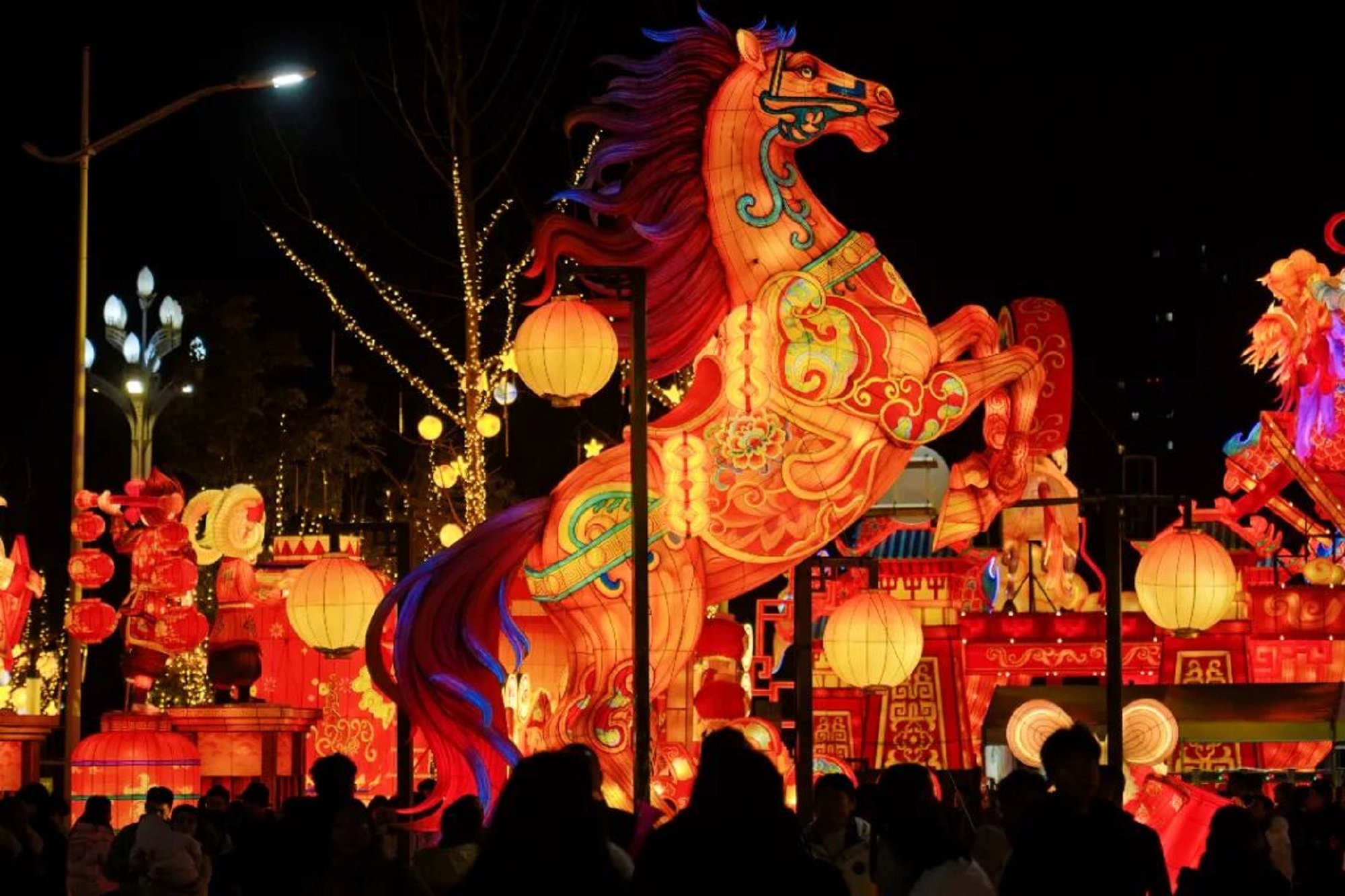 其中,以渠縣漢闕與丙午馬年為創(chuàng)意靈感的大門燈組“龍馬精神”莊重威嚴,承載著千年禮制文化底蘊;“鹽水女神”與“戰(zhàn)神廩君”燈組隔空相望,演繹著古老浪漫傳說;賽博機甲風的“潮小虎”、炫彩靈動的“蒸汽戰(zhàn)魂”等燈組,成為年輕人爭相打卡的網(wǎng)紅點位?,F(xiàn)代科技的深度賦能,讓傳統(tǒng)彩燈藝術與巴賨文化打破空間桎梏,創(chuàng)造了超乎想象的視覺盛宴。