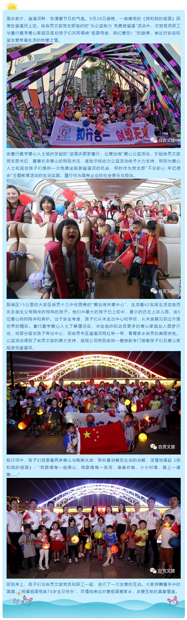 自貢文旅為公益助力——孤幼孩子與愛心家庭近60人免費(fèi)游釜溪