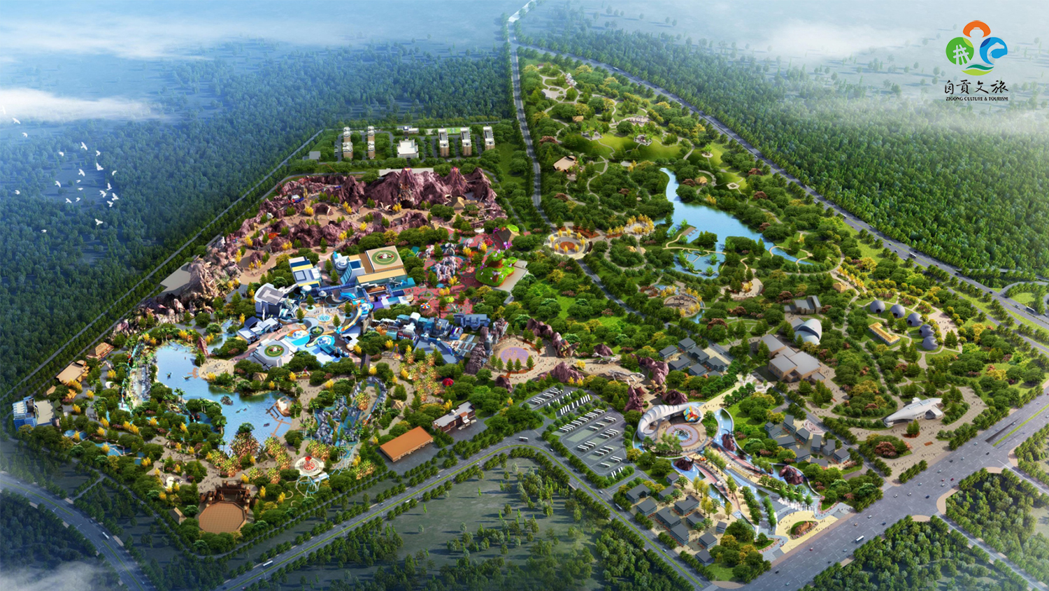 自貢恐龍文化科技產(chǎn)業(yè)園是國內(nèi)首個以恐龍文化為主題的大型高科技現(xiàn)代產(chǎn)業(yè)園,總占地面積約1000畝,總建筑面積約35萬平方米,由自貢方特恐龍王國、時空·龍門鎮(zhèn)兩大主體組成并配以道路及周邊基礎(chǔ)設(shè)施,該項(xiàng)目總投資約49.04億元,其中自貢方特恐龍王國投資31億元,由自貢文旅投與華強(qiáng)方特集團(tuán)共同投資建設(shè),時空·龍門鎮(zhèn)、道路及周邊基礎(chǔ)設(shè)施由自貢文旅投投資建設(shè)。