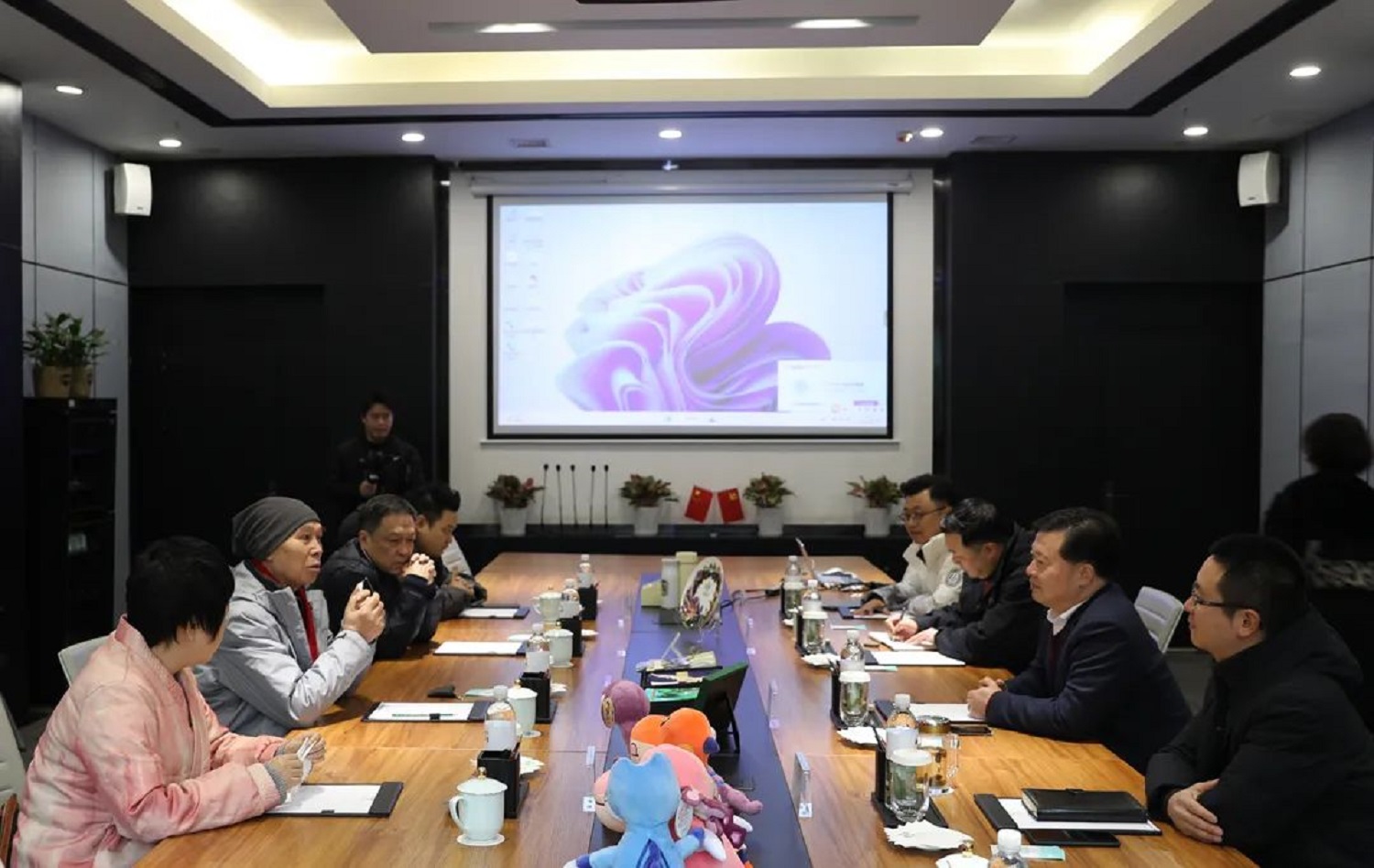1月28日,著名散打評(píng)書表演藝術(shù)家李伯清,四川省曲藝研究院院長(zhǎng)沈軍一行到自貢文旅投公司交流座談,自貢文旅投公司董事長(zhǎng)宋青山等出席座談會(huì)。