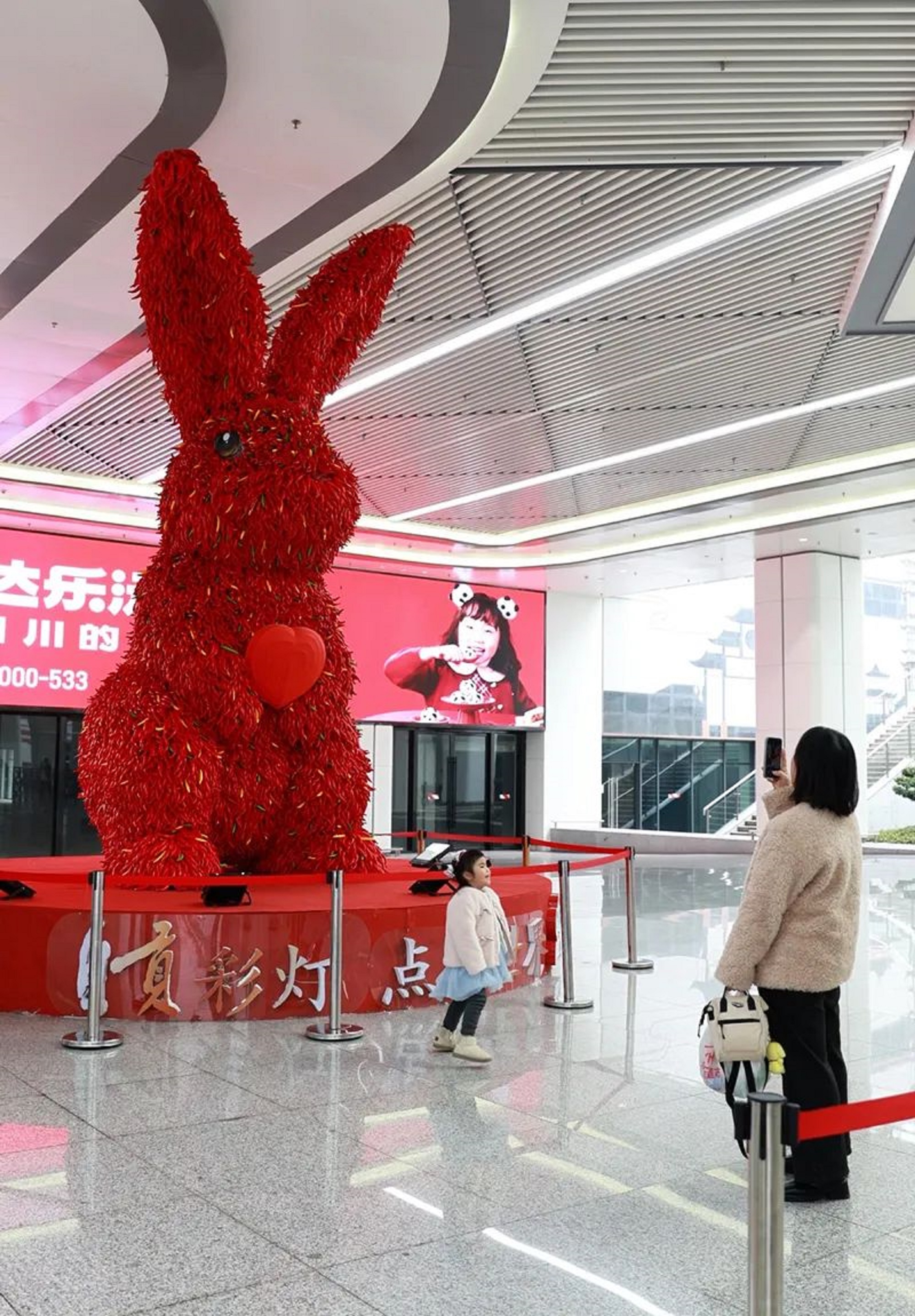 近日,一座高6米的巨型辣椒兔燈組“現(xiàn)身”自貢高鐵站,吸引了眾多旅客駐足打卡,成為站內(nèi)一道亮麗的風(fēng)景線。